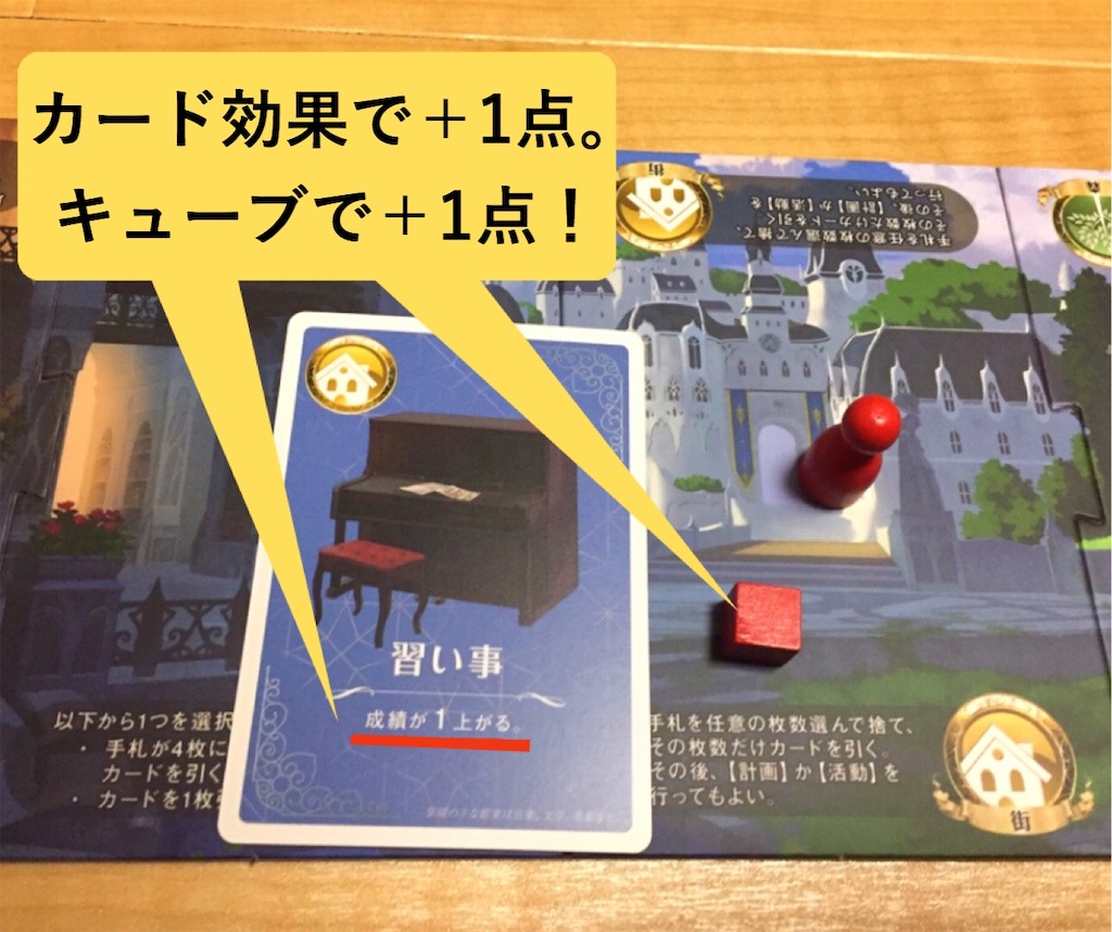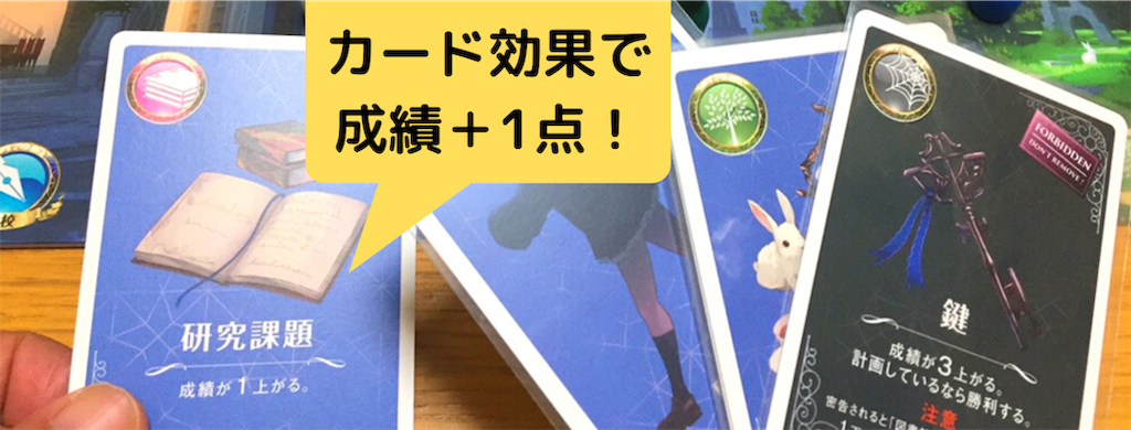 「計画」や「密告」などを使い効率良く成績を上げて他のプレイヤーより先に成績を10点にすることが目的です。